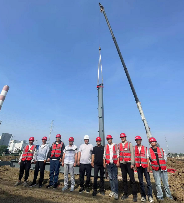 丙類車間鋼架順利開吊是該工程一個(gè)重要里程碑節(jié)點(diǎn)。為確保進(jìn)展順利,吊裝前,項(xiàng)目部組織專業(yè)人員對吊裝方案、安全措施、質(zhì)量標(biāo)準(zhǔn)、起吊機(jī)械等進(jìn)行詳細(xì)審查,開展現(xiàn)場土建交付安裝前的條件確認(rèn),項(xiàng)目經(jīng)理現(xiàn)場指揮,安全管理人員全程監(jiān)控,保證鋼結(jié)構(gòu)吊裝能夠高標(biāo)準(zhǔn)開吊,為后續(xù)安裝工作奠定堅(jiān)實(shí)基礎(chǔ)。