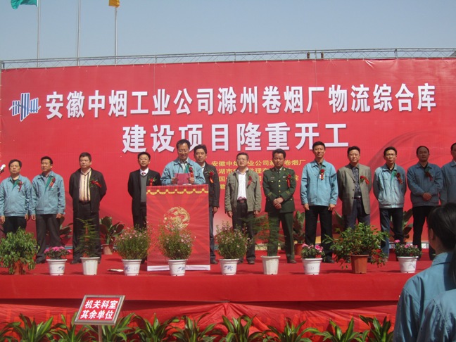 4月18日上午,陽光明媚。由公司滁州分公司承建的滁州卷煙廠物流綜合庫工程開工典禮隆重舉行。滁州卷煙廠主要領(lǐng)導(dǎo)及當?shù)刂鞴懿块T負責人蒞臨現(xiàn)場,公司總經(jīng)理王軍邦、黨委書記戴樹明應(yīng)邀出席儀式,滁州分公司全體管理人員出席慶典,戴書記代表施工單位祝賀工程隆重開工。滁州卷煙廠物流工程的順利開工,標志著公司與安徽中煙的良好合作關(guān)系得到進一步延續(xù)和鞏固。
