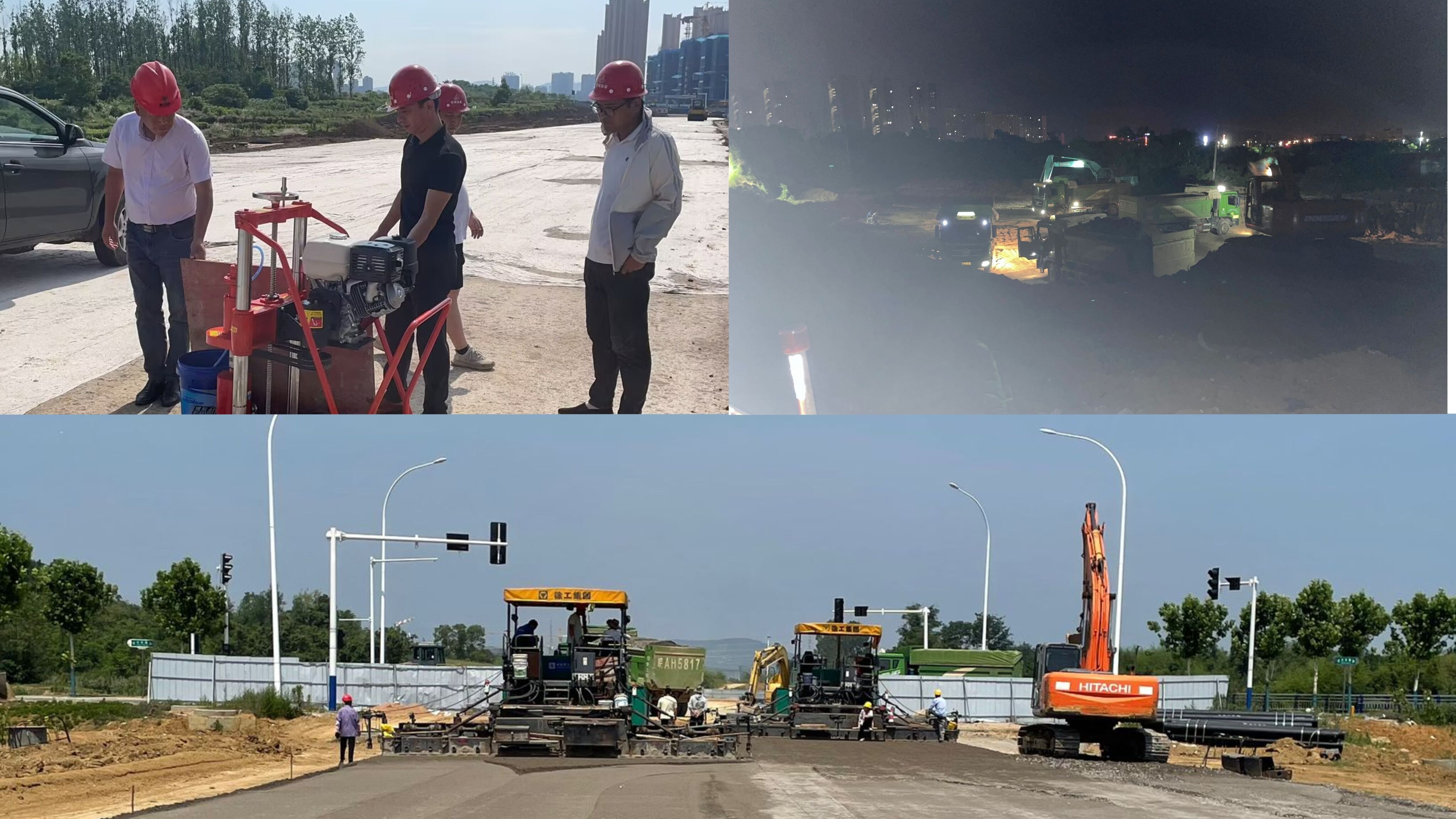 圖為:廬江縣新建立人路(福泉路-城西大道)工程水穩(wěn)取芯試驗(yàn)、土方夜間外運(yùn)及快車(chē)道水穩(wěn)攤鋪碾壓施工