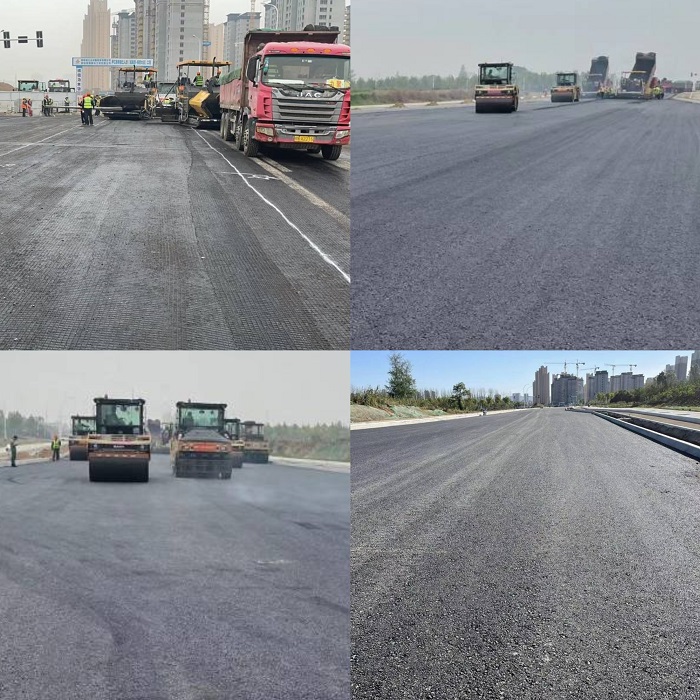 為了確保第一層瀝青安全高效攤鋪,項目部超前謀劃、科學組織、精心安排,圍繞瀝青攤鋪施工工藝、質(zhì)量控制要點、機械設備安全操作規(guī)程及現(xiàn)場施工注意事項等方面進行詳細的安全技術交底。攤鋪過程中,項目部嚴格控制瀝青混合料運輸、瀝青料攤鋪溫度、松鋪系數(shù)和碾壓工藝等工序,只見現(xiàn)場機械隆隆作響,讓這條1.25公里的筆直“巨龍”漸漸穿上黑色“鱗甲”;經(jīng)過近15個小時奮戰(zhàn),順利完成瀝青第一層瀝青攤鋪任務。