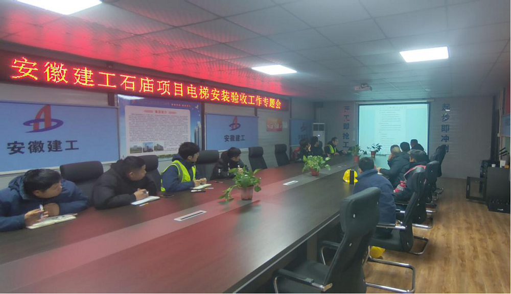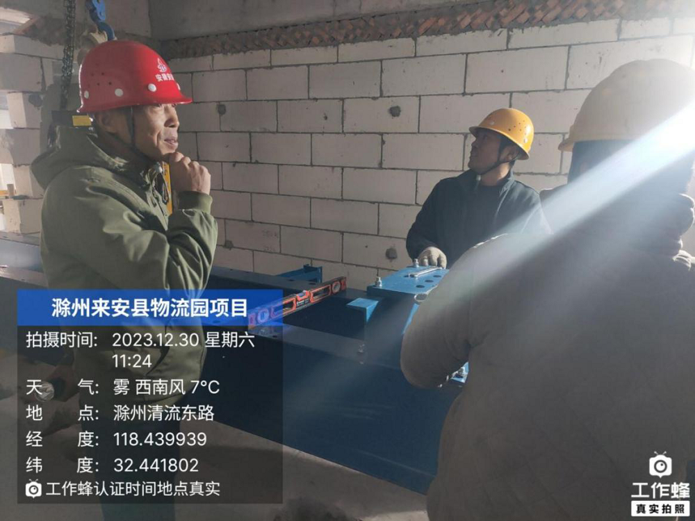 來安縣農副產品冷鏈物流產業(yè)園電梯安裝工程現場,項目經理帶班對電梯機房進行進度、質量、安全檢查,確保電梯安裝符合工程建設標準。