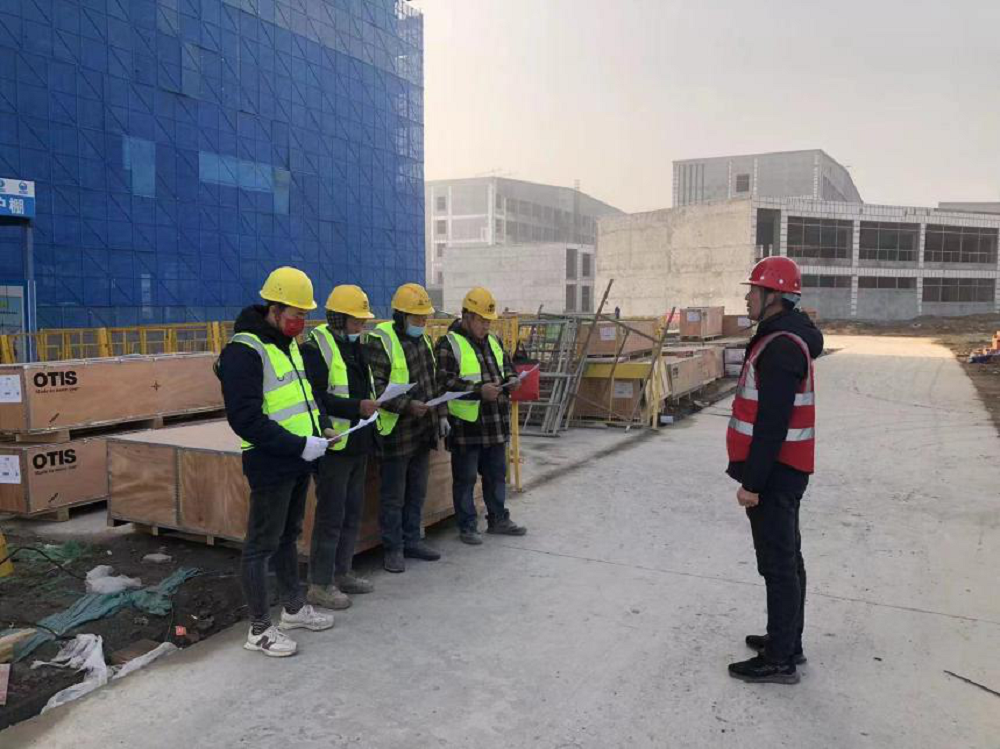 渦陽職教園電梯安裝工程現場,項目部對施工班組人員開展三級安全教育、技術交底,強化安全防范意識,確保項目施工生產安全。