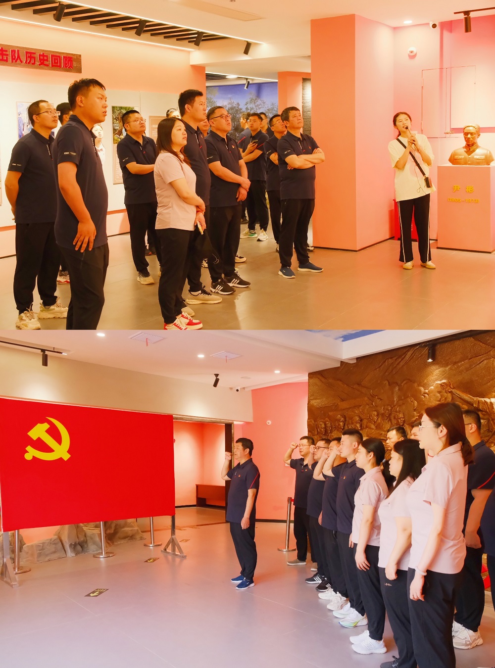 在紀(jì)念館內(nèi),通過參觀展區(qū)內(nèi)陳列的各類圖片、文獻(xiàn)以及實物等資料,大家追尋紅色足跡,深入了解革命先輩浴血奮戰(zhàn)的革命歷史和革命精神,深情追憶老一輩共產(chǎn)黨人的英勇事跡,深切緬懷流血犧牲的革命先烈。參觀學(xué)習(xí)結(jié)束后,全體黨員干部在紀(jì)念館前重溫了入黨誓詞。