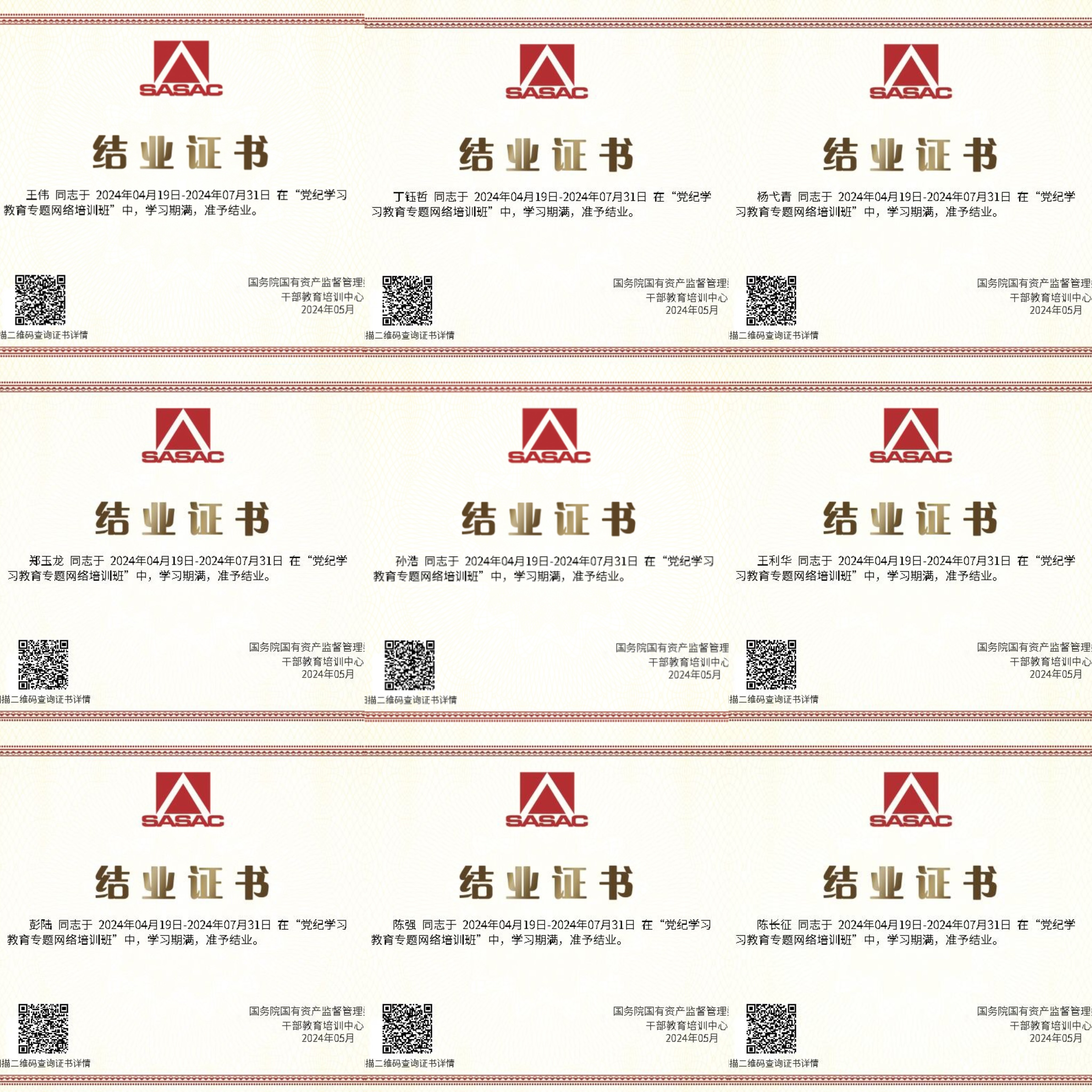 結(jié)業(yè)證書(shū)(部分)