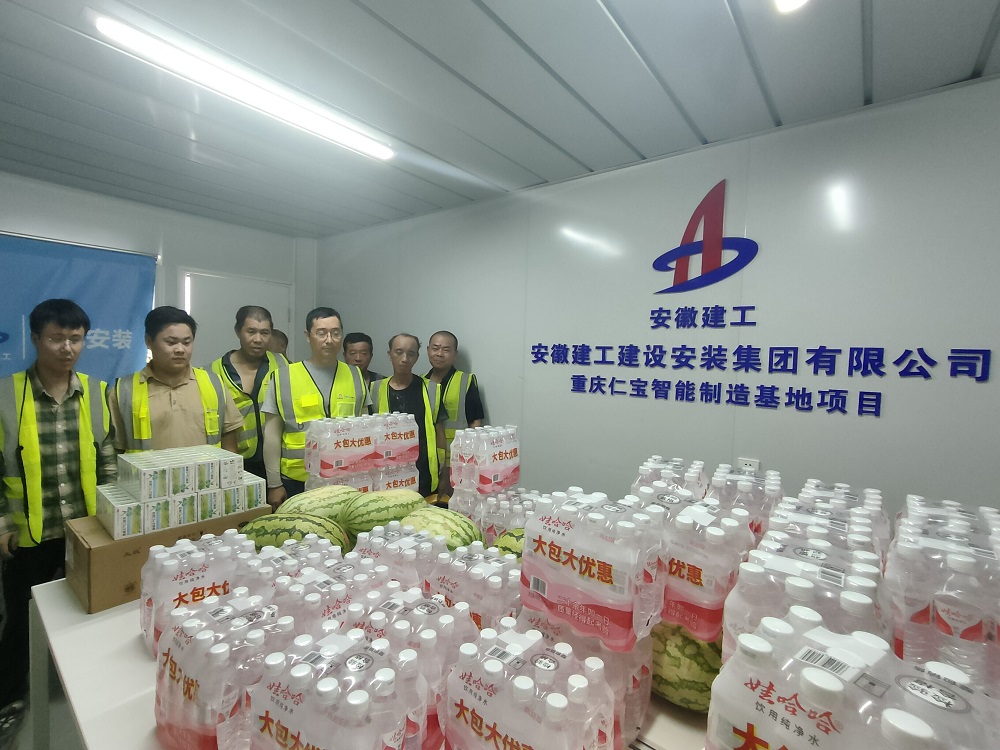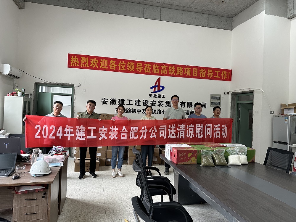 盛夏已至,驕陽似火,建工安裝合肥分公司省內(nèi)外各項目現(xiàn)場掀起“沖刺三季度”大干熱潮。在合理組織施工的同時,分公司多措并舉,通過聯(lián)合屬地項目部開展送清涼等慰問活動,為建設(shè)者安全健康提供保障。