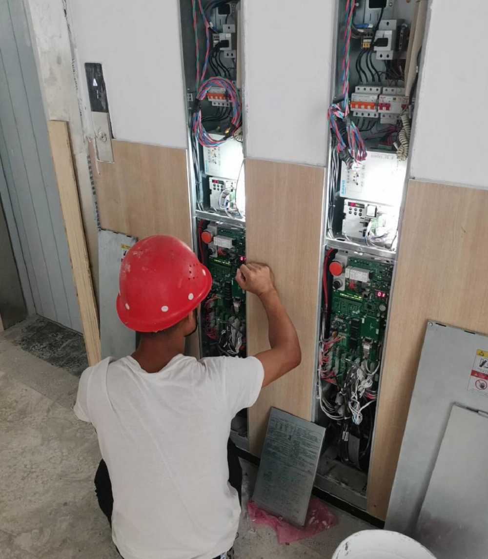 蚌埠自貿(mào)區(qū)山香學(xué)校項(xiàng)目施工人員正在進(jìn)行無(wú)機(jī)房電梯檢驗(yàn)
