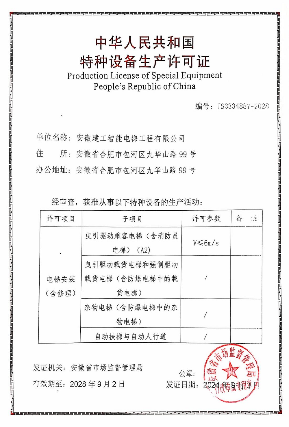 喜訊!安徽建工智能電梯工程有限公司順利取得電梯安裝(含修理)A2級(jí)資質(zhì)
