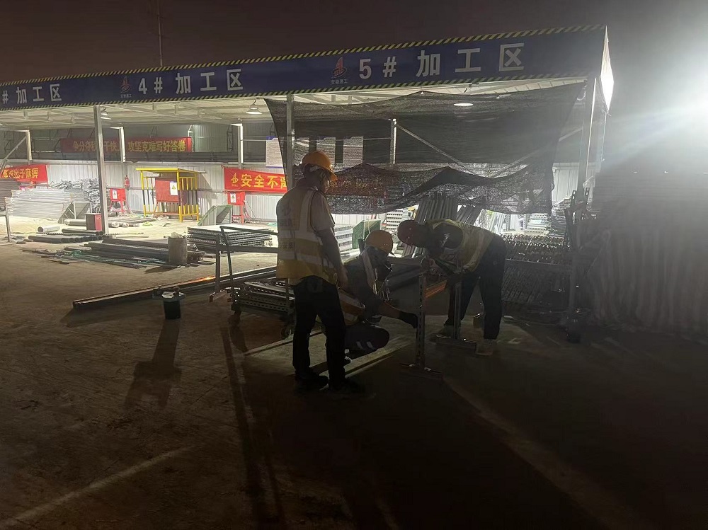 項目部全體管理人員緊抓施工節(jié)點,緊跟土建、鋼結(jié)構(gòu)單位施工進度,全力統(tǒng)籌人、材、機合理高效入場,根據(jù)現(xiàn)場施工情況逐步優(yōu)化各專業(yè)施工方案,全力推進施工進度。目前,車間一整體防雷接地已完成60%,QA辦公樓預(yù)埋已完成90%,隨著土建單位工作面的交接,車間一5區(qū)、6區(qū)正在進行成品支架、虹吸雨水管道、排水管、通風(fēng)管道等施工作業(yè)。