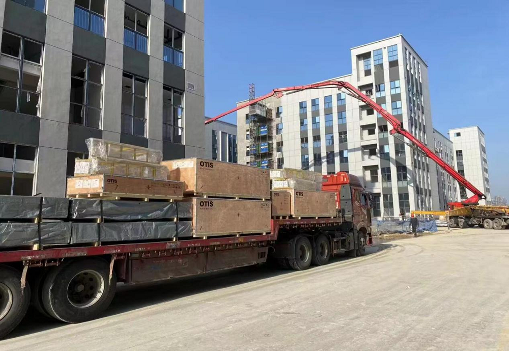 長(zhǎng)淮衛(wèi)鎮(zhèn)派出所項(xiàng)目電梯到貨,現(xiàn)場(chǎng)施工人員正在準(zhǔn)備卸貨