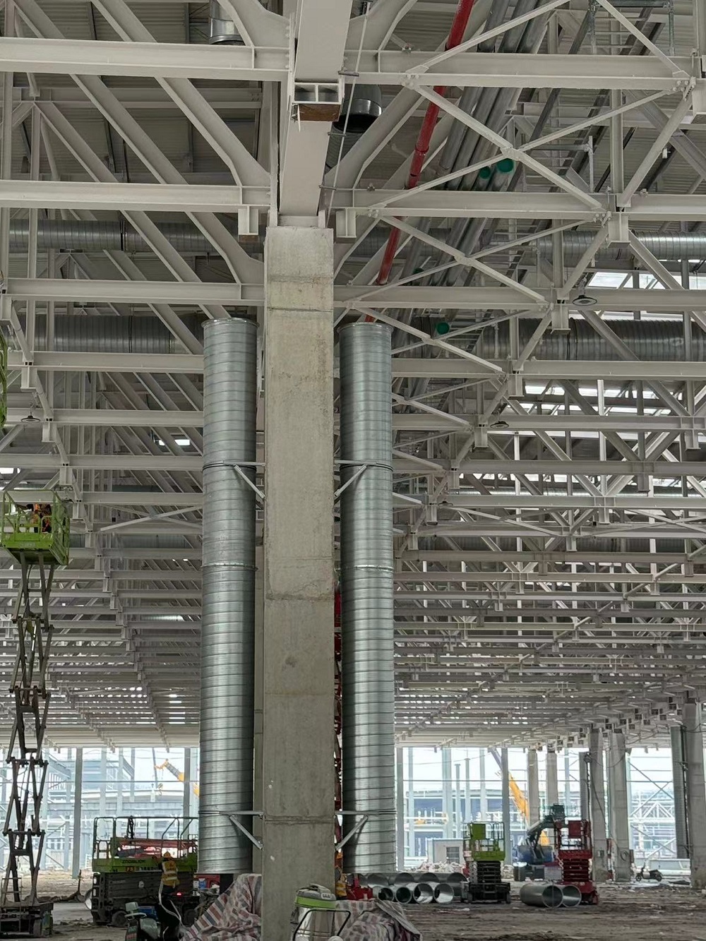 在建工安裝合肥經(jīng)開區(qū)臨湖智能制造產(chǎn)業(yè)園項(xiàng)目現(xiàn)場,項(xiàng)目部管理人員及水電班組、通風(fēng)班組、消防班組、虹吸雨水班組施工人員夜以繼日加班加點(diǎn)搶抓進(jìn)度。30名項(xiàng)目管理人員,226名施工人員,96輛登高機(jī)械,采取“白加黑” 、“5+2”模式施工作業(yè),確保各區(qū)域各專業(yè)施工生產(chǎn)穩(wěn)步推進(jìn)。 目前正在進(jìn)行車間一通風(fēng)系統(tǒng)、雨水系統(tǒng)、消防系統(tǒng),壓縮空氣與循環(huán)水系統(tǒng)等安裝作業(yè),站房一同步開展管線預(yù)埋與預(yù)制工作。本周已完成車間一風(fēng)管安裝約4200平方米,雨水管道安裝約1100米,消防管道安裝約590米,橋架安裝約600米。