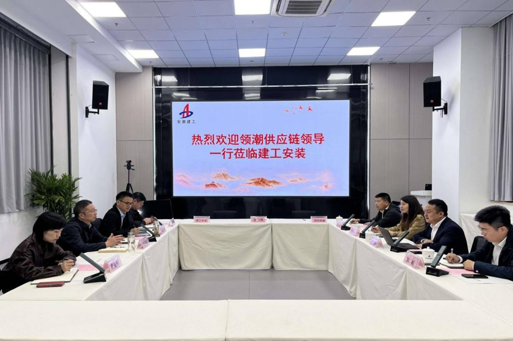 建工安裝集團黨委書記、董事長朱珍宏與深圳領潮供應鏈管理有限公司總經理端木穎新共同見證簽約儀式,并就深化合作進行座談交流。