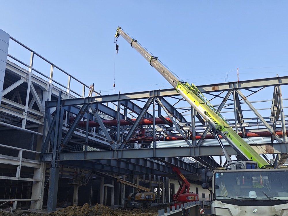 雖已立冬,天氣轉(zhuǎn)涼,但合肥新橋智能制造產(chǎn)業(yè)園一階段一標(biāo)項(xiàng)目部戰(zhàn)鼓依然在響,施工現(xiàn)場依舊是一片奮戰(zhàn)猶酣的火熱場面。吊車揮舞著“長臂”、升降車起起落落、施工車來回穿梭、工人們忙忙碌碌,敲擊聲聲聲入耳……一切都在為確保競賽節(jié)點(diǎn)努力拼搏著。