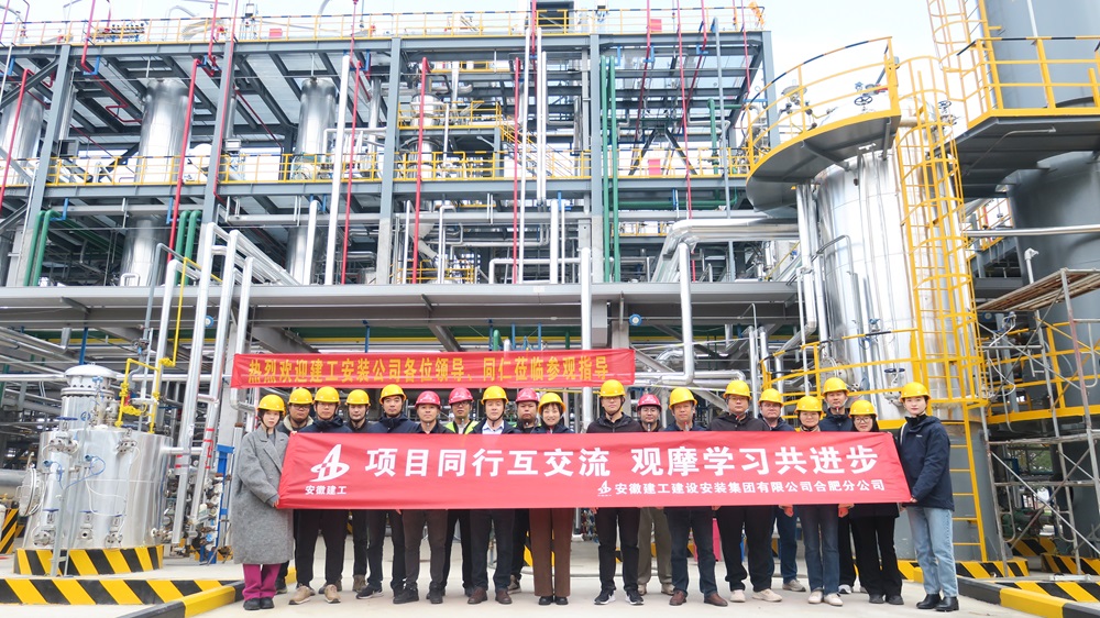 在項目現(xiàn)場,項目負(fù)責(zé)人介紹了該化工類項目的基本概況和工程特點,分析講解有關(guān)工業(yè)化項目的整體管理策劃、施工組織、質(zhì)量控制、安全管理、現(xiàn)場質(zhì)量安全標(biāo)準(zhǔn)化施工、設(shè)備安裝技術(shù)等方面的經(jīng)驗。觀摩過程中,各項目管理人員分享了自身在質(zhì)量安全文明標(biāo)準(zhǔn)化施工管理、施工樣板做法和實體工藝質(zhì)量管理情況的經(jīng)驗做法。現(xiàn)場一個個技術(shù)含量足、輻射帶動強、綜合效益高的新技術(shù)、好想法層出不窮,學(xué)習(xí)交流氛圍熱烈濃厚。