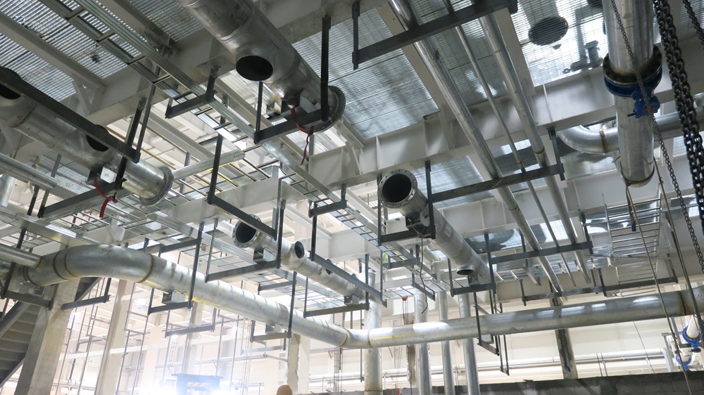 截至目前,焊裝車間空調(diào)水系統(tǒng)、給水系統(tǒng)、消防水系統(tǒng)已全部完成系統(tǒng)試壓工作。焊裝車間屋頂風(fēng)機、風(fēng)機控制電纜、動力電纜也已全部安裝完成。與此同時本項目的能源中心正在有條不紊的推進,冷水機組、冷卻塔、水泵等大型設(shè)備陸續(xù)到場。