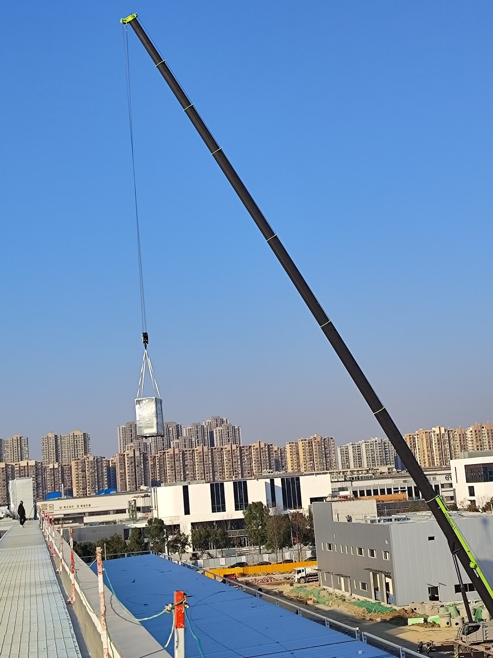 近日,車間一大型設(shè)備組合式空調(diào)陸續(xù)到貨,項(xiàng)目部有序開展組合式空調(diào)現(xiàn)場吊裝工作。為了確保吊裝工作的順利進(jìn)行,項(xiàng)目部多次召開方案實(shí)施推進(jìn)會,根據(jù)設(shè)備到場計(jì)劃,結(jié)合天氣情況、進(jìn)場路線、現(xiàn)場站位、部件起吊等反復(fù)優(yōu)化吊裝方案。梳理工作清單、制定工作任務(wù)、責(zé)任落實(shí)到人。同時(shí)采用現(xiàn)場拉設(shè)警戒區(qū)域、現(xiàn)場作業(yè)交底、試吊、全程看護(hù)作業(yè)等方式,保障現(xiàn)場吊裝作業(yè)安全進(jìn)行。