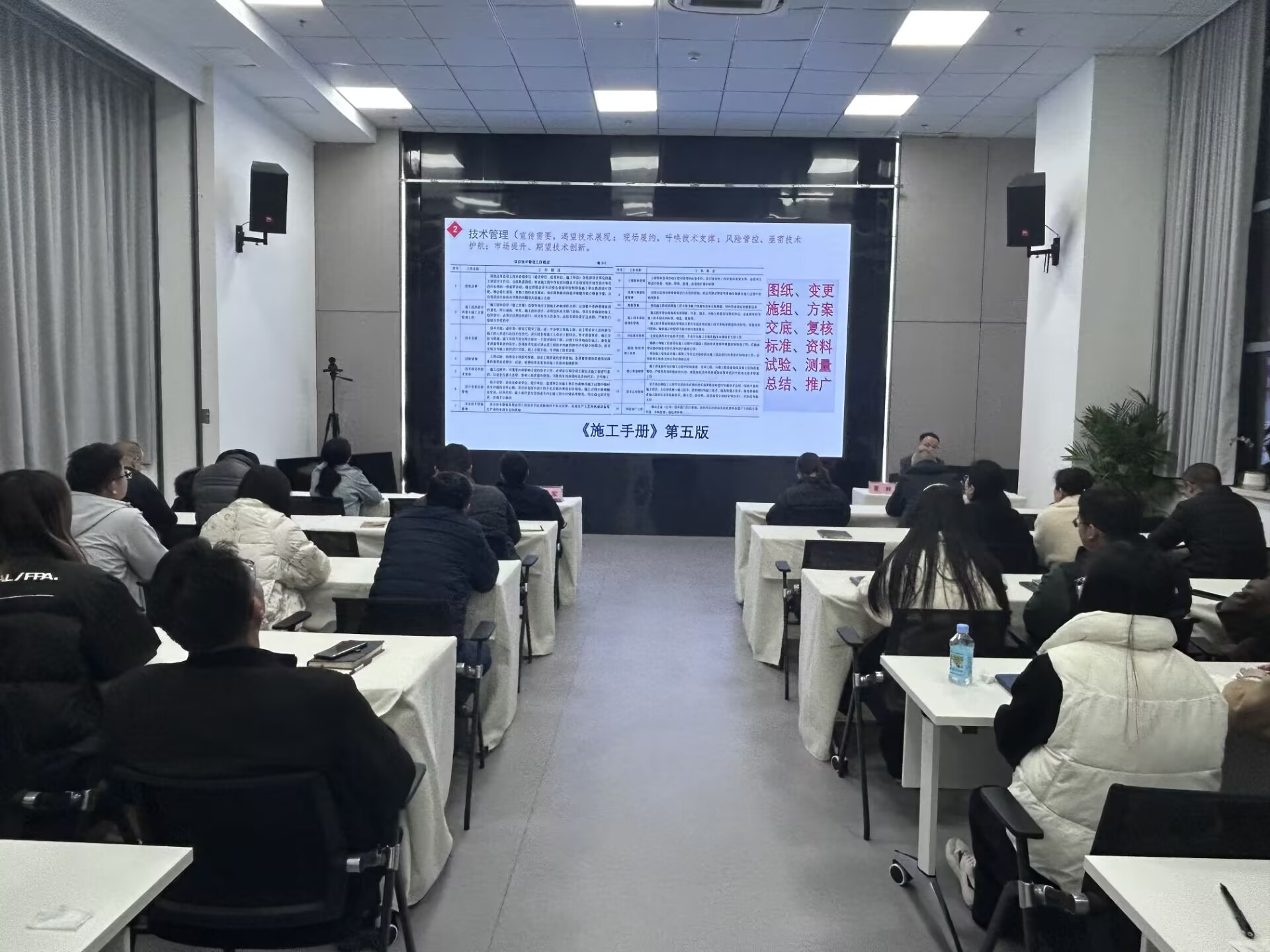 夏輝以中央發(fā)布的《一張思維導(dǎo)圖帶大家看2025年政府工作十大任務(wù)》的切入點,強調(diào)了高質(zhì)量發(fā)展和創(chuàng)新驅(qū)動的重要性。隨后他從技術(shù)管理、機電工程體系、機電工程安裝工藝細部節(jié)點做法優(yōu)選、AI應(yīng)用等方面對機電工程基礎(chǔ)知識進行了細致解讀,講解了技術(shù)在企業(yè)運營中的核心作用。就《聚焦機電主責主業(yè) 走“專精特強”之路行動方案》(第一版)與參培人員進行深入交流。