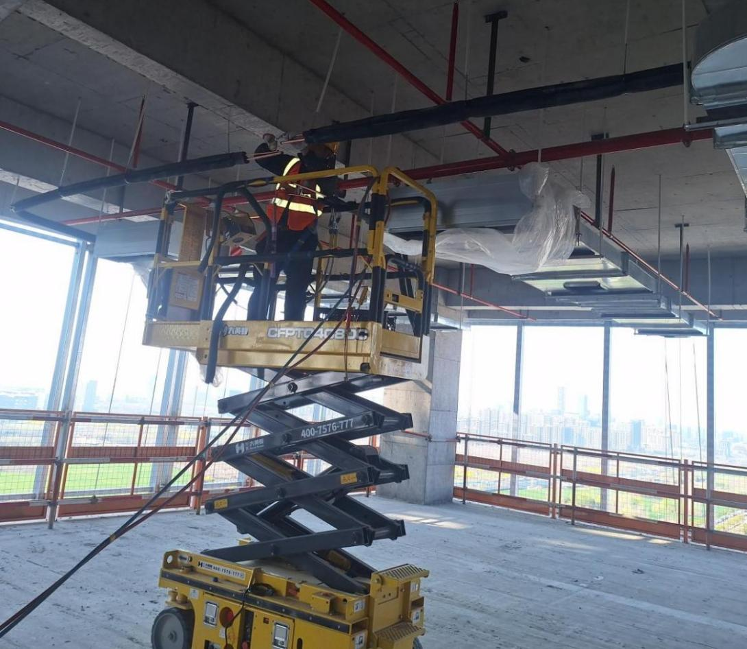 截至目前,A3、A4樓空調已進場744臺,已基本吊裝完畢,正進行冷媒管和冷凝水管施工。風管保溫已完成60%,配電箱已全部進場,電線電纜已進場約11萬米。預計將于5月底完成施工任務。