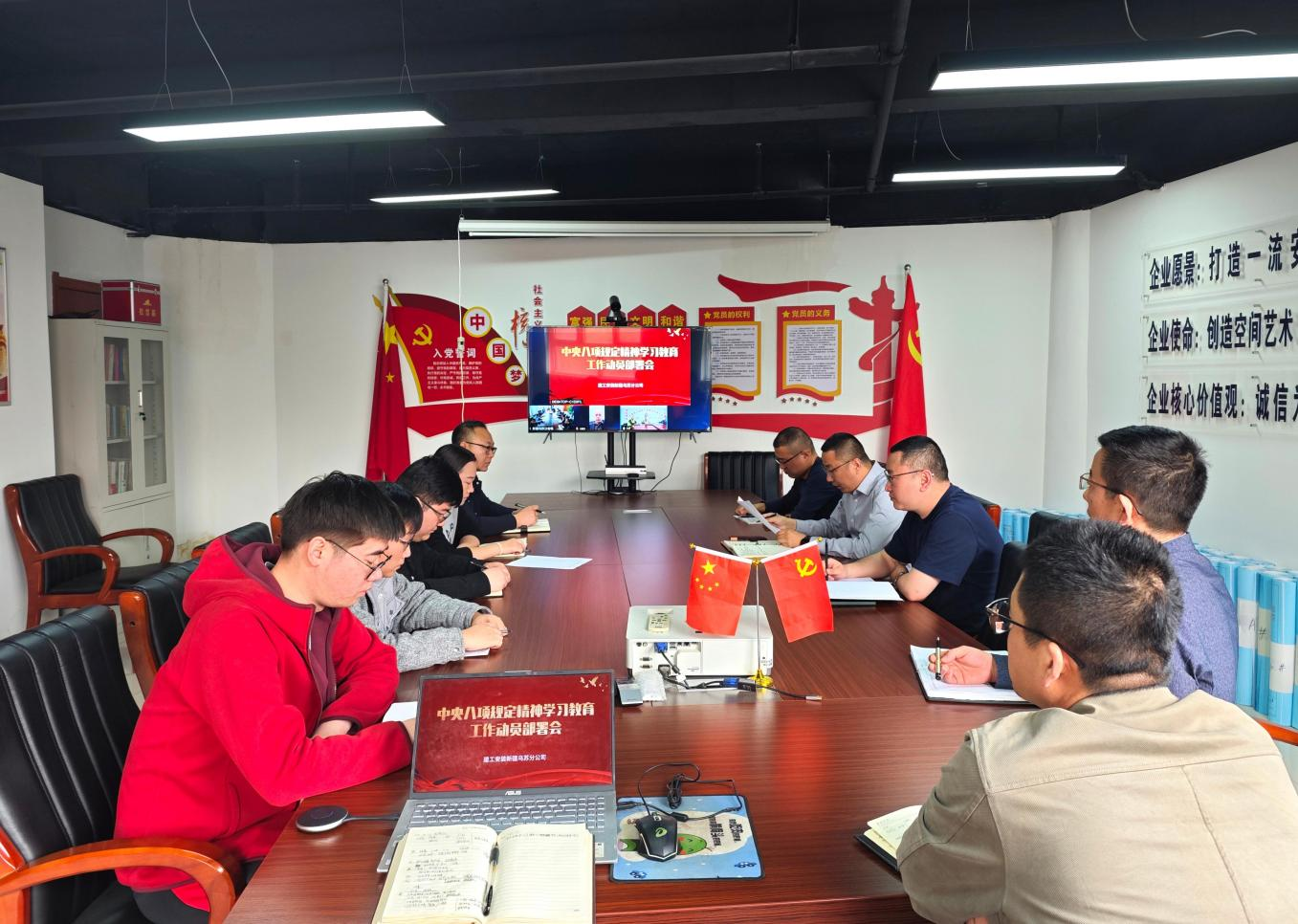 4月14日,建工新疆烏蘇分公司召開深入貫徹中央八項規(guī)定精神學習教育工作動員部署會,會議由黨支部書記、經(jīng)理李磊主持,采用線下+線上視頻連線的方式召開,分公司領(lǐng)導班子、支部黨員、機關(guān)員工參加會議。