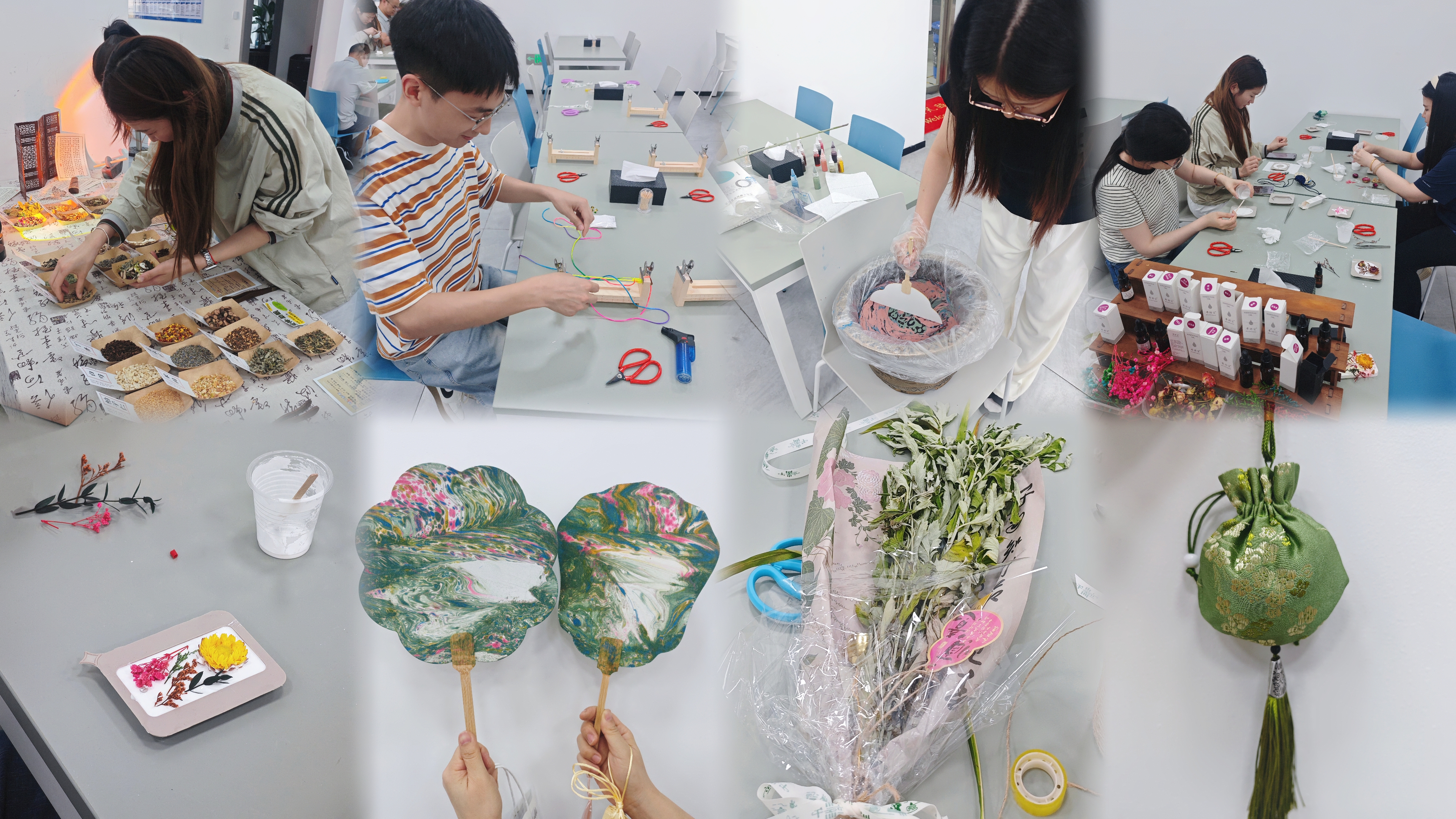 活動(dòng)現(xiàn)場(chǎng),五彩繩、香囊、艾草花束、漆扇、香牌等豐富多樣的手工項(xiàng)目精彩紛呈,吸引了眾多職工熱情參與。大家相互交流與合作,親手制作獨(dú)具特色的端午手工藝品,感受著傳統(tǒng)文化的深厚底蘊(yùn)。