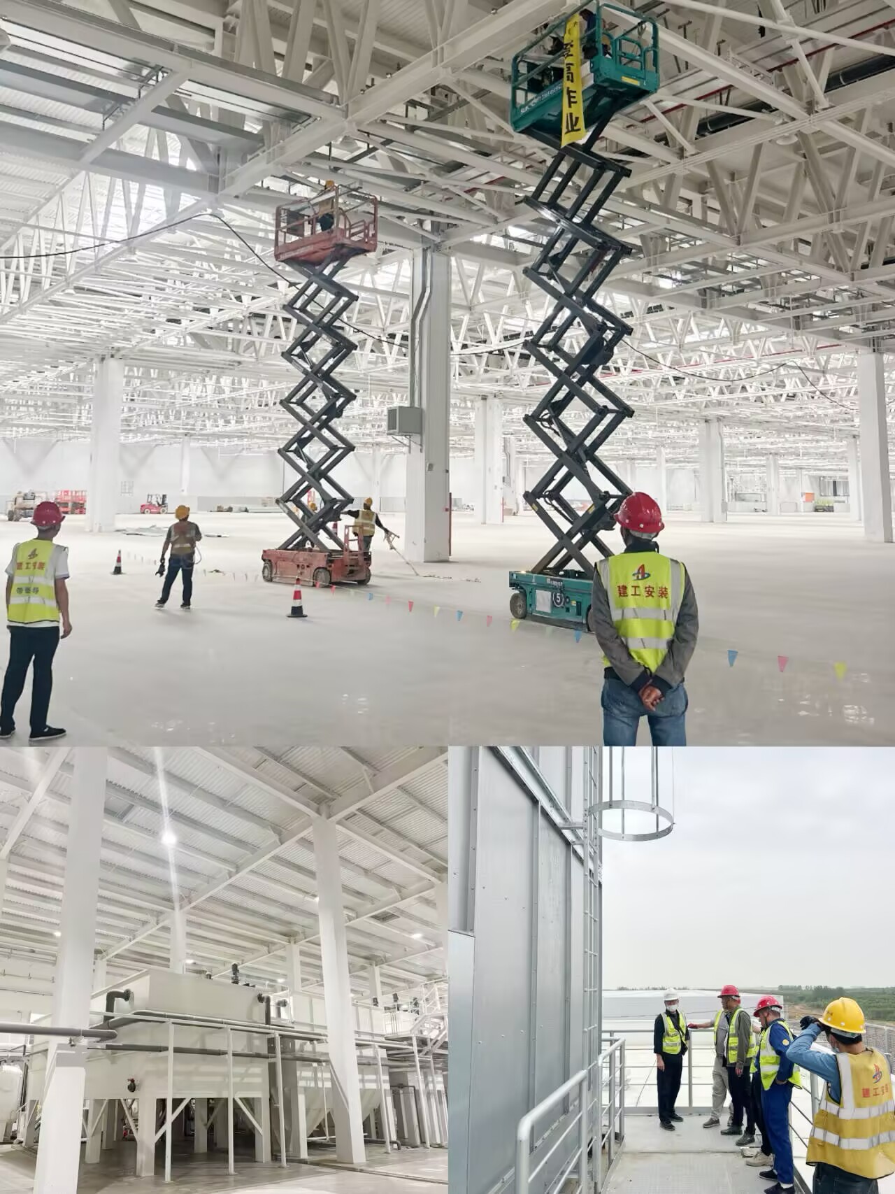 走進(jìn)項(xiàng)目施工現(xiàn)場,銀灰色的鋼結(jié)構(gòu)廠房在陽光下熠熠生輝,長達(dá)百米的標(biāo)準(zhǔn)化車間整齊排列,工業(yè)美學(xué)與實(shí)用功能完美融合?,F(xiàn)場管理人員正在監(jiān)督支吊架整改安裝、冷卻塔設(shè)備避雷針安裝交底等,其中污水處理站安裝調(diào)試已完成,下一步全體人員將以高效率和高標(biāo)準(zhǔn)推動項(xiàng)目順利通過竣工驗(yàn)收。