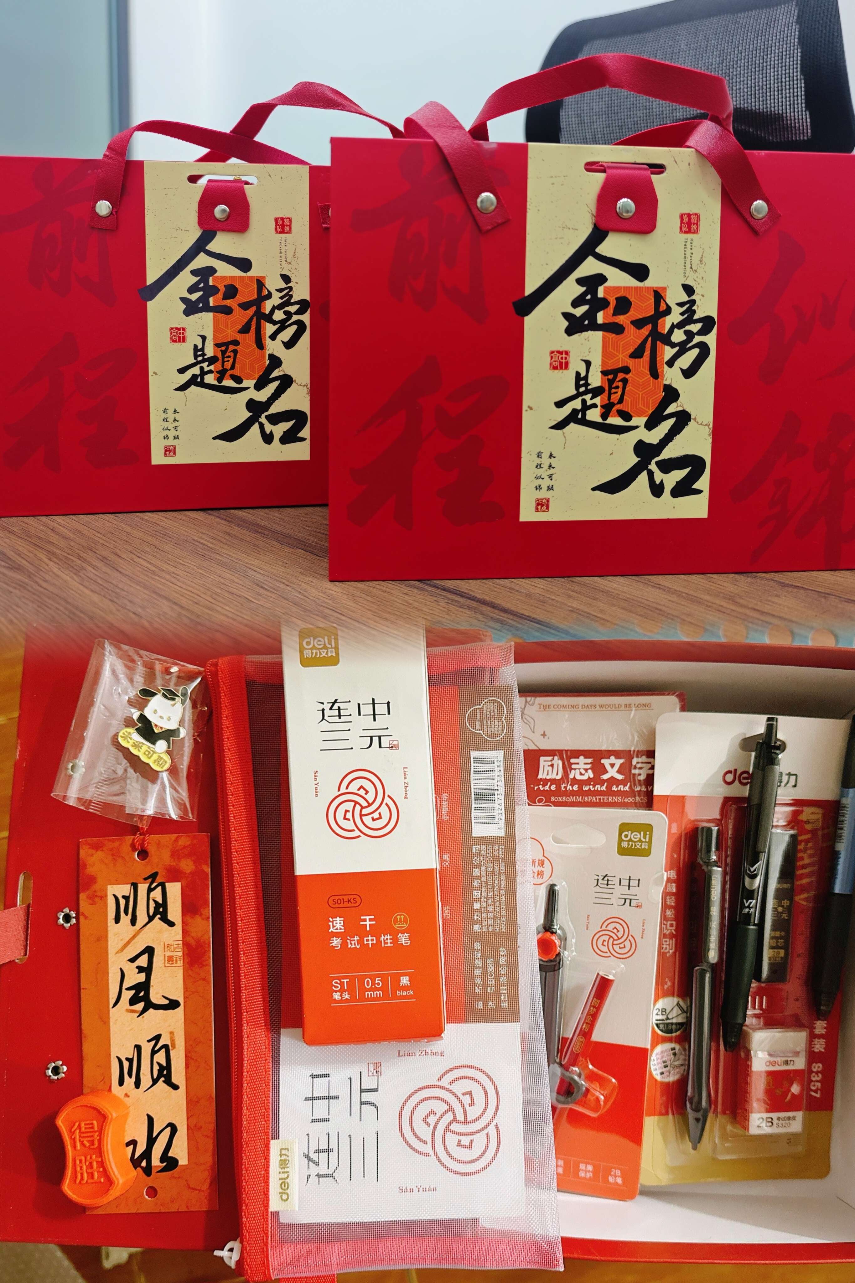 此次發(fā)放的大禮包內(nèi)容豐富且極具意義。其中,文具套裝包含了高品質(zhì)的簽字筆、涂卡筆、尺子等考試必備文具,助力學(xué)子們在考場上發(fā)揮出最佳水平;祝福語書簽上,書寫著“旗開得勝”“未來可期”等充滿鼓勵(lì)與期許的話語,寄托著公司對考生們的美好祝愿。