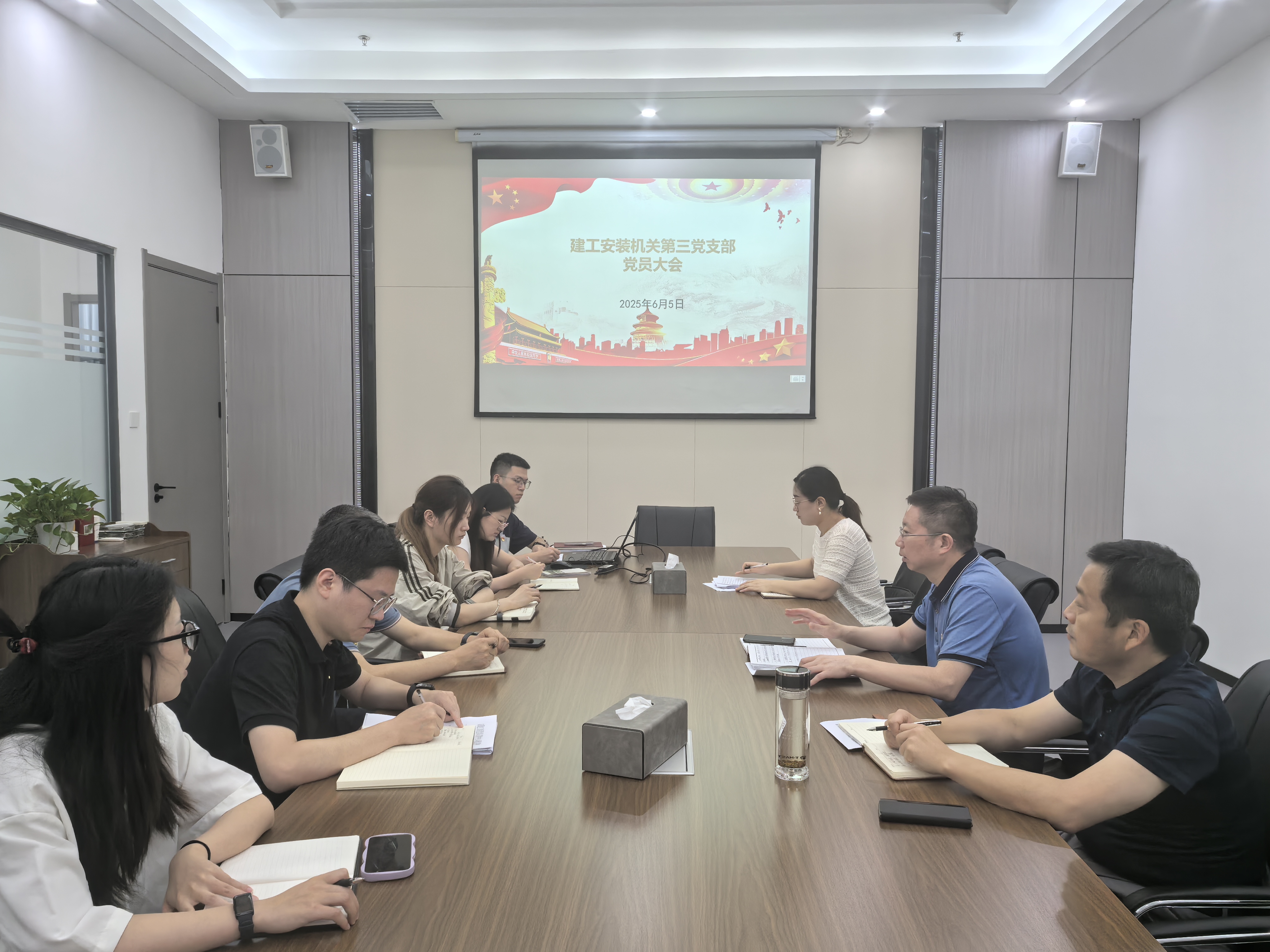 6月5日下午,機關(guān)第三黨支部在公司第二會議室召開黨員大會,公司黨委書記、董事長朱珍宏以普通黨員身份參會,會議由黨支部副書記陳晶晶主持,支部全體黨員參加。