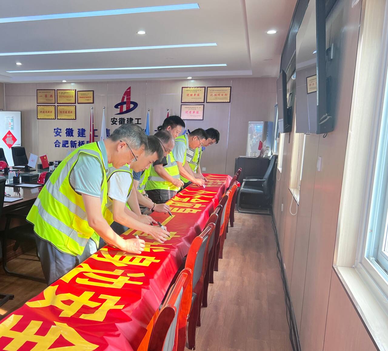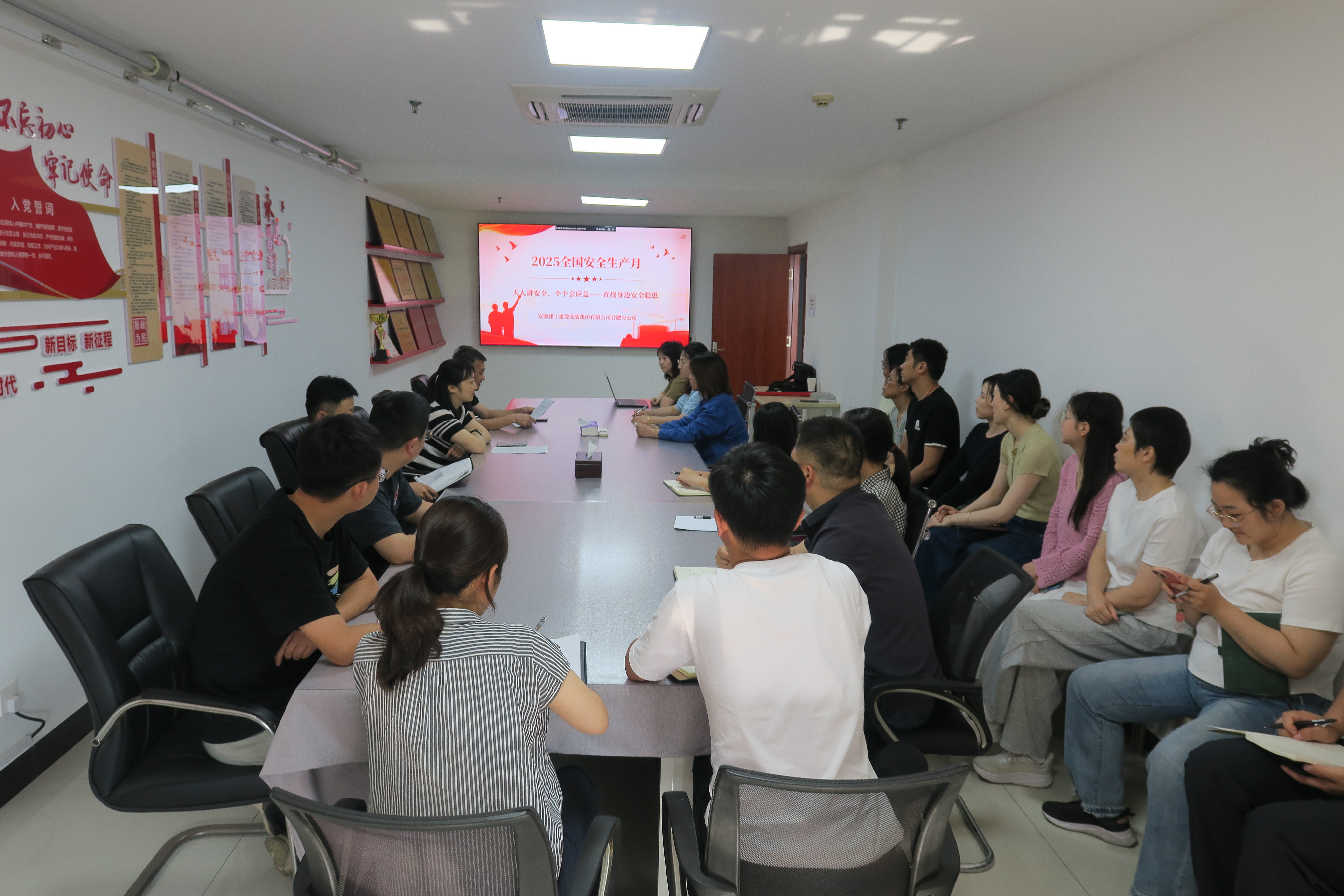 6月3日上午,建工安裝合肥分公司舉行2025年"安全生產(chǎn)月"活動(dòng)啟動(dòng)儀式?;顒?dòng)主題為“人人講安全、個(gè)個(gè)會(huì)應(yīng)急——查找身邊安全隱患”。通過動(dòng)員宣誓、全員簽名、觀看安全生產(chǎn)警示教育片全面吹響安全生產(chǎn)攻堅(jiān)號(hào)角。