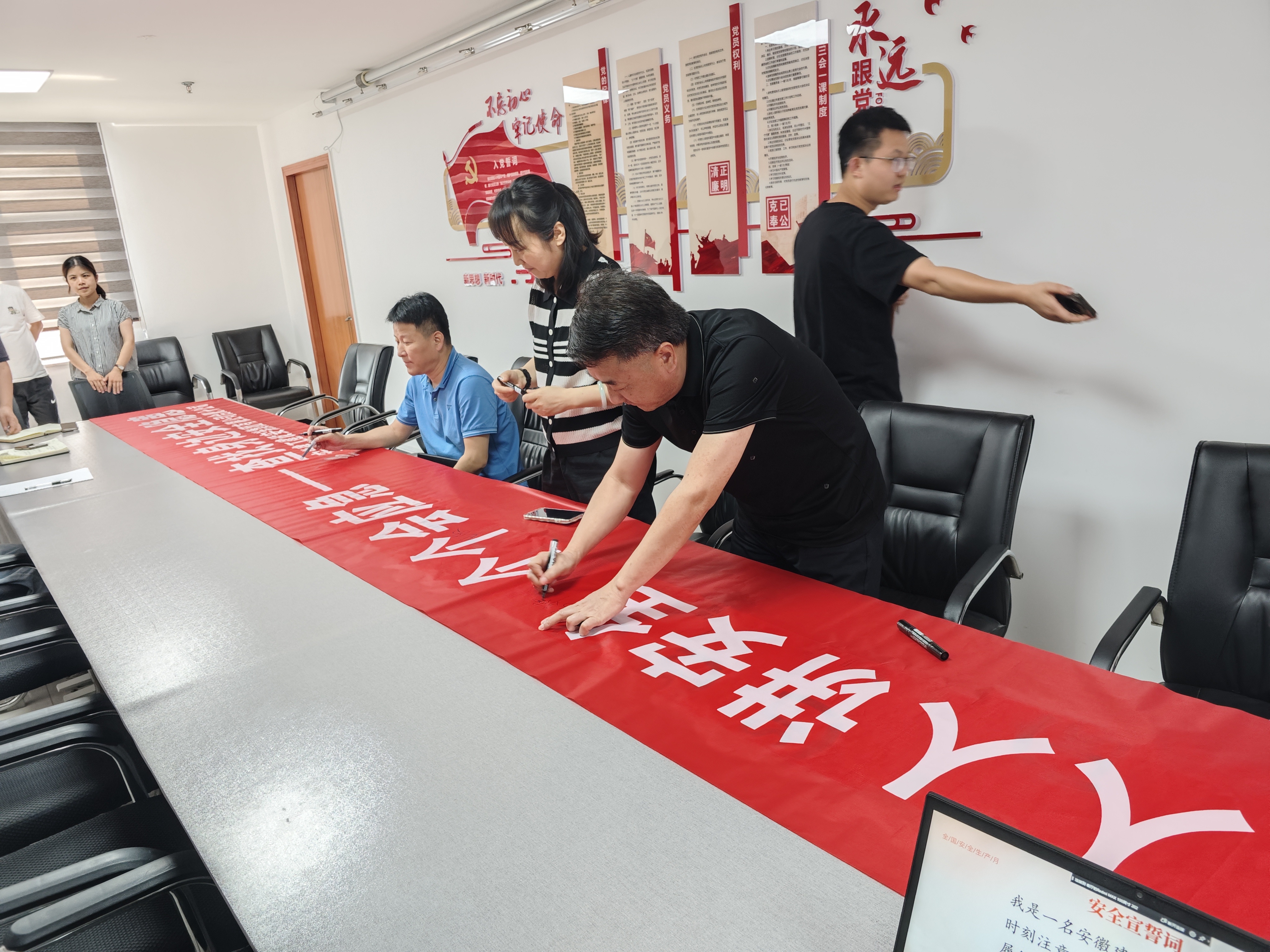 全體參會(huì)人員還進(jìn)行了莊嚴(yán)的安全宣誓,并在“人人講安全 個(gè)個(gè)會(huì)應(yīng)急—查找身邊安全隱患”主題橫幅上鄭重簽名,承諾以自己的實(shí)際行動(dòng)增強(qiáng)安全意識(shí)、履行安全責(zé)任,共同構(gòu)筑公司高質(zhì)量發(fā)展的安全屏障。