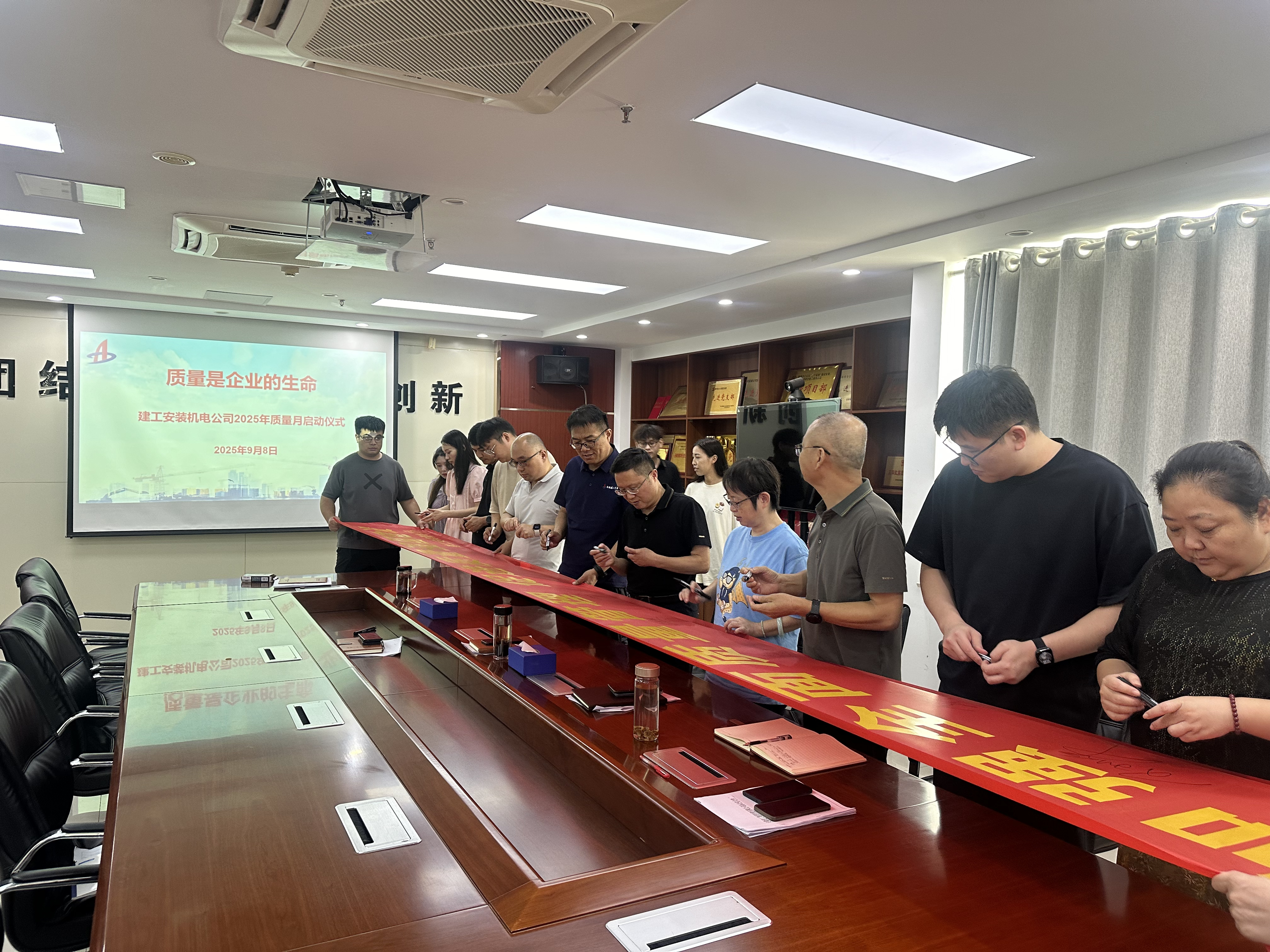 會(huì)上,詳細(xì)解讀《2025年度“質(zhì)量月”活動(dòng)方案》,并從五大板塊系統(tǒng)推進(jìn)活動(dòng)開展:統(tǒng)一主題、統(tǒng)一宣誓簽名,以及領(lǐng)導(dǎo)動(dòng)員、觀看案例警示、方案宣貫等方式,提升員工的質(zhì)量意識(shí);利用電子屏、橫幅、海報(bào)、宣傳欄等多種渠道同步推送活動(dòng)信息,營造濃厚的宣傳氛圍;安排專項(xiàng)檢查、QC選題、知識(shí)競賽、技能比武系列活動(dòng),確?;顒?dòng)落地見效;開展工程質(zhì)量回訪,及時(shí)關(guān)注業(yè)主所需,維護(hù)企業(yè)信譽(yù);做好總結(jié),積累經(jīng)驗(yàn),促質(zhì)量管理能力提升,著力把質(zhì)量管理文化融入企業(yè)管理全過程。