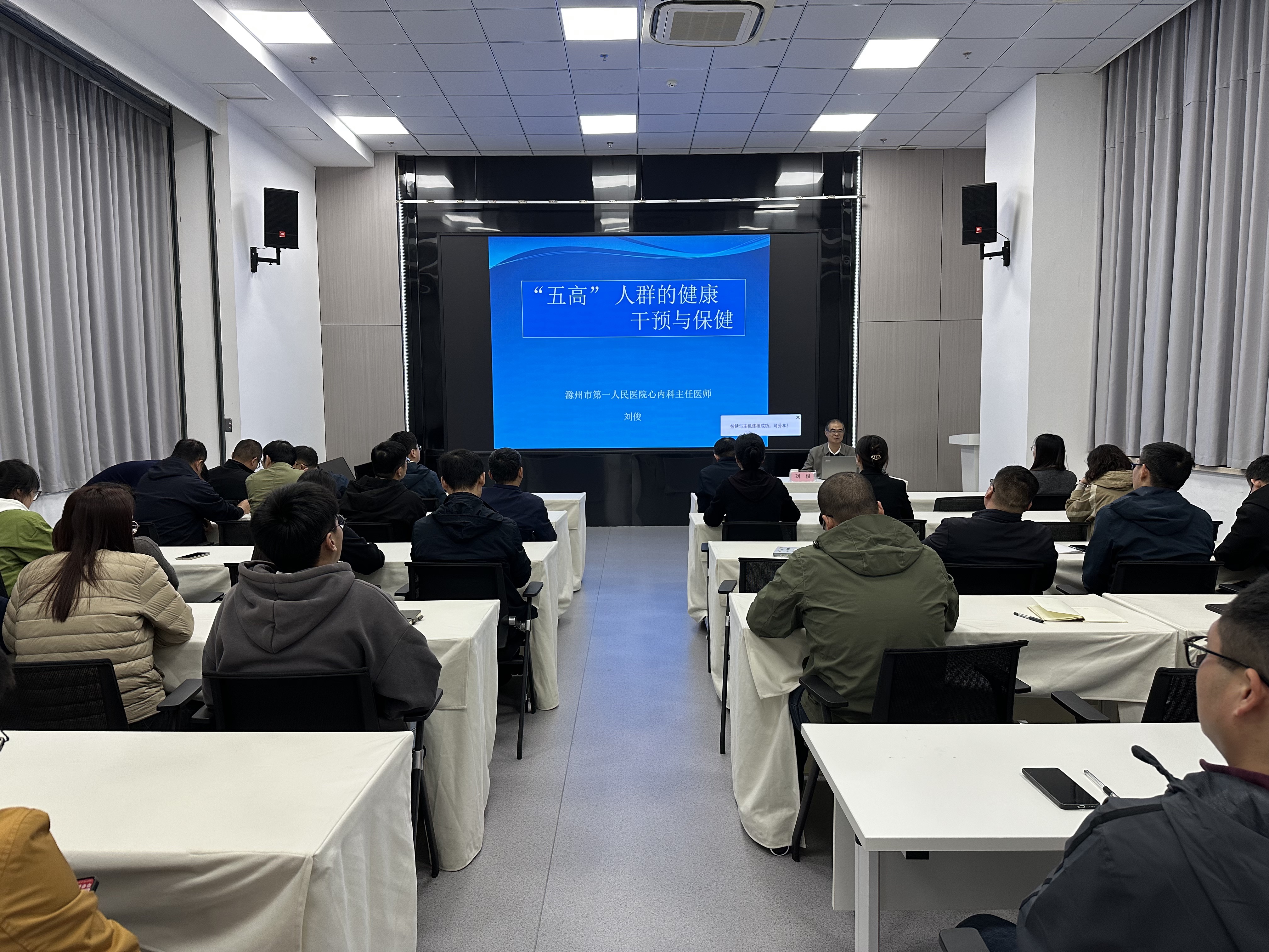 講座中,劉主任以通俗易懂的語(yǔ)言、生動(dòng)詳實(shí)的案例,圍繞高血壓、高血脂、高血糖、高尿酸、高同型半胱氨酸這“五高”問(wèn)題展開深入講解。從“五高”的發(fā)病機(jī)制、早期癥狀、潛在危害,到臨床診斷標(biāo)準(zhǔn),再到針對(duì)性的健康干預(yù)措施,教授進(jìn)行了全方位、多角度的剖析。