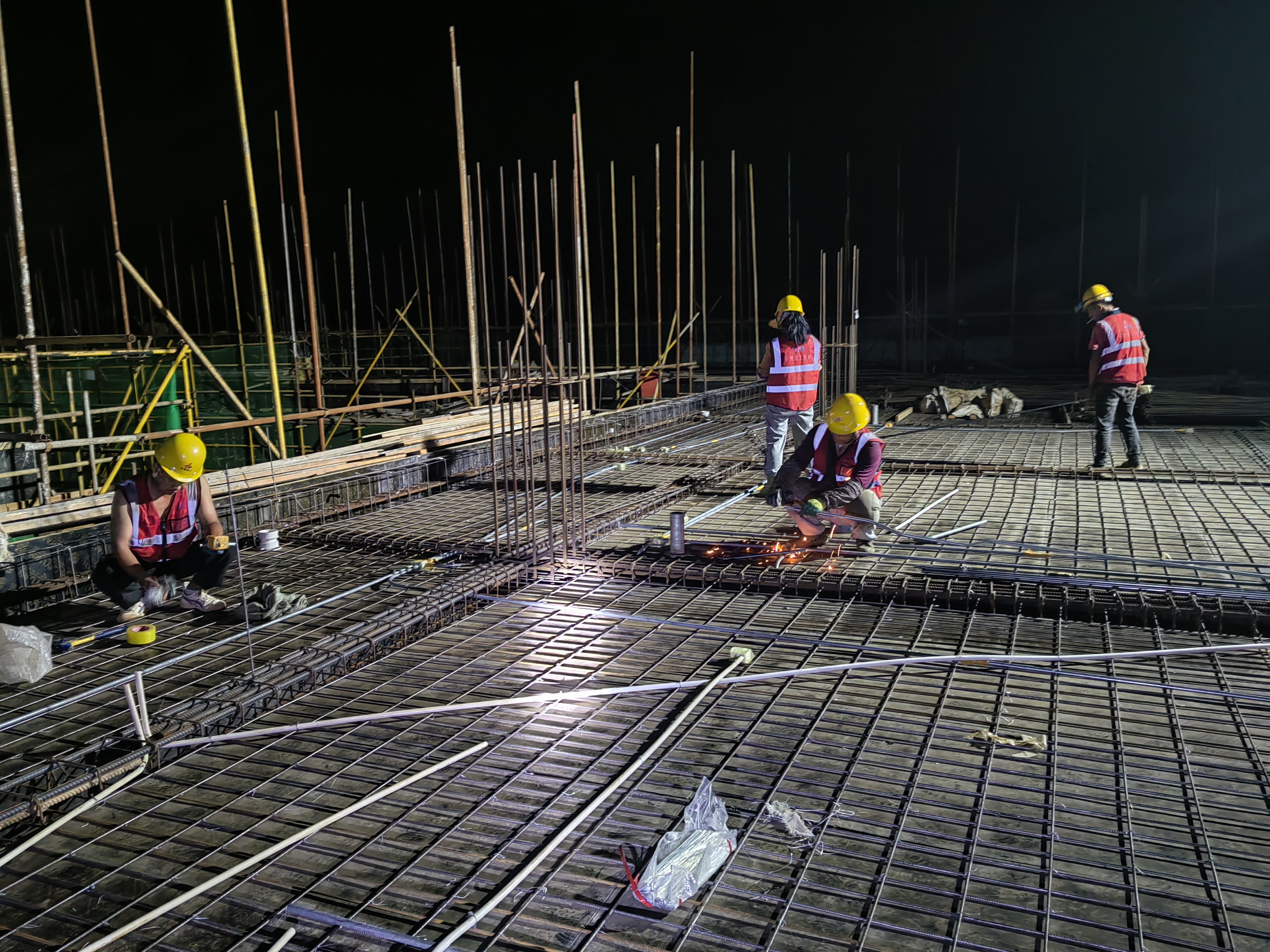 秋夜?jié)u涼,建工安裝公路公司涇青高速房建項目水電安裝現(xiàn)場卻熱度不減。為保次日混凝土澆筑,桃花潭服務區(qū)綜合樓等單體預埋面施工從晨霧干到星光;雨幕下,挖掘機揮臂,工人披雨衣?lián)]鐵鍬進行施工管道墊層。反光背心穿梭,切割機,切割機金芒四濺,轟鳴與汗雨交織成一夜酣戰(zhàn)。